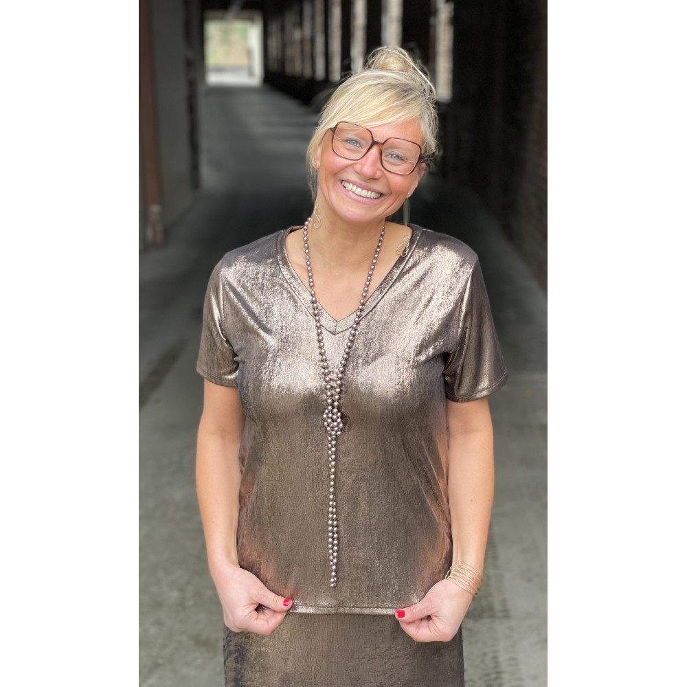T-shirt V fluide brillant